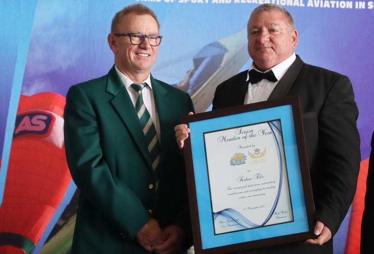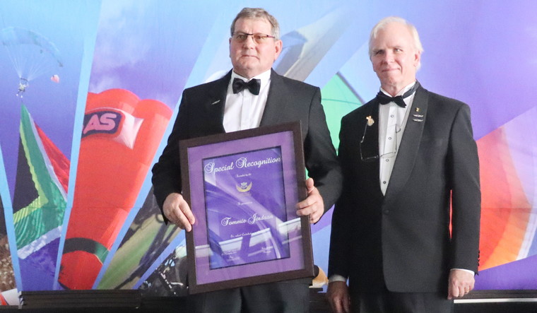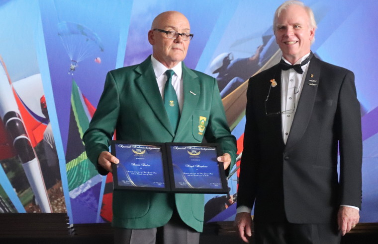 For exceptional service as treasurer of SAPFA for 10 years, including serving as treasurer for the World Rally Flying Championships held at Brits in 2022. In addition to tirelessly ensuring that the SAPFA finances are run smoothly, Mauritz du Plessis is a stalwart supporter of SAPFA who volunteers at and participates in events and provides guidance to members ensuring that they feel welcome and encouraged to participate in events. Mauritz's award was accepted by Frank Eckhardt.