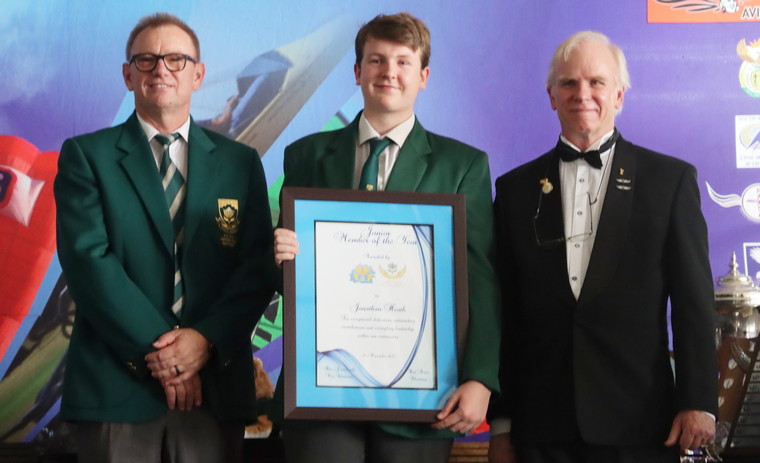 As well as to Jonathan Heath SAMAA Junior Member of the Year. Jonathan, now aged 18, joined Model Aerobatics Association of South Africa (MAASA) and started competing in the Sportsman class in September 2021. He won every Monthly and League competition in Sportsman class and became the Sportsman Class Champion at the 2022 National Championships.