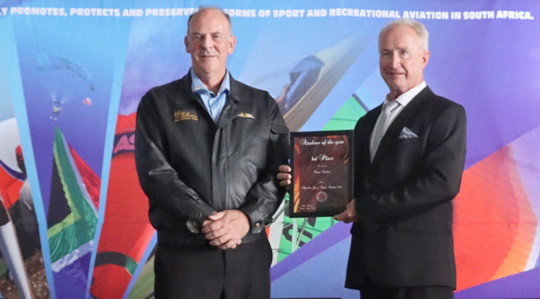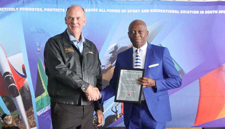 The Sport Aerobatic Club nominated Roger Deare for his outstanding contribution to sport aviation. He orchestrated the highly successful third edition of the FAI Sky Grand Prix of Aerobatics championship, held at Virginia airport, Durban on June 16, 2023. Roger's remarkable efforts in organizing all logistics for this internationally acclaimed event, featuring some of the world's finest aerobatic pilots, culminated in a sold-out show. This event marked a historic return to the iconic Virginia airport after nearly a decade, presenting unique challenges, which Roger and his team expertly overcame. Roger Deare's evident passion for sport aviation makes him a deserving recipient of this award. The award was accepted on behalf of Roger by Cliff Lotter.