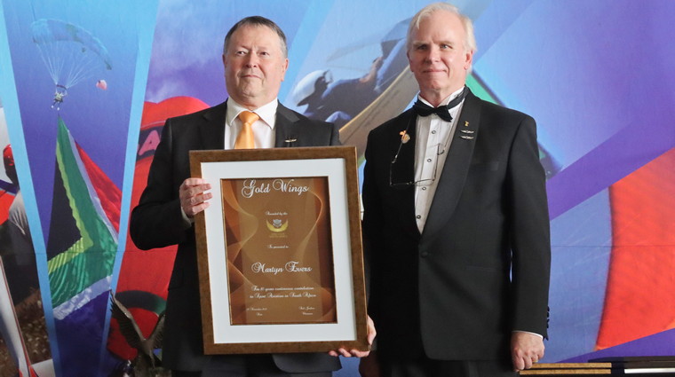 BAFSA member Martyn Evers was awarded Gold Wings for at least 10 years meritorious service to Sport Aviation in South Africa.