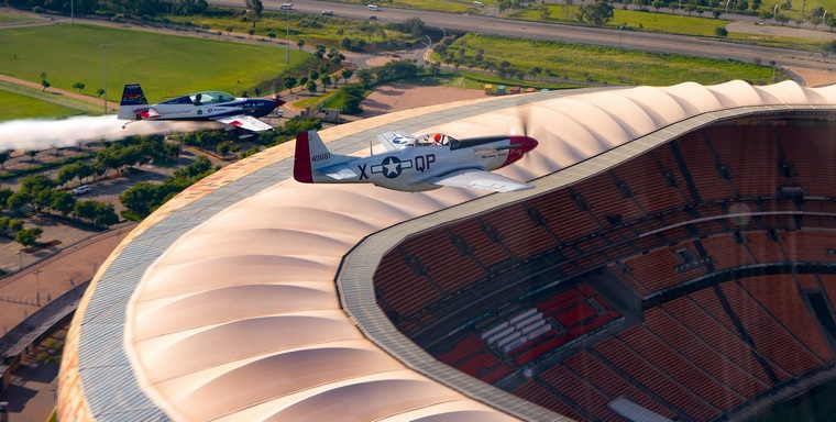 The formation, with fitting callsign, Mustang Sally formation, took to the sky in the late afternoon and took Randy on the flight of a lifetime. Every time I picked up the camera to shoot, I just saw smiles from across the back seat of the P-51! Menno took us around some iconic landmarks surrounding Johannesburg, including the Soccer City stadium and the Soweto Towers, finishing with a very nice formation fly past over Rand Airport. It was all smiles on the ground when we landed, with Randy's smile stretching all the way from Rand Airport to Michigan!