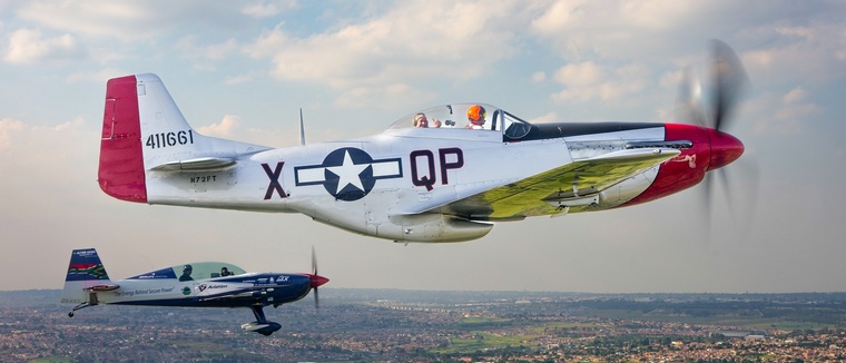 Jason Beamish who is an accomplished aircraft engineer by trade, is also world-renowned aerobatics pilot with more than 2000 flying hours and is rated on more than 60 aircraft! He has flown across the world and competed in some of the most prestigious aerobatics events. His double display with Nigel Hopkins is definitely one of the most exhilarating shows of precision flying at any air show. On the day, Jason piloted his spectacular dark blue Extra 300 and would be flying in close formation with Mustang Sally. Flying is in his blood, with both his father Larry Beamish and his grandfather Rod Beamish being accomplished pilots, with Rod also having flown P51 Mustang's during World War 2, making this quite a special flight for Jason as well!