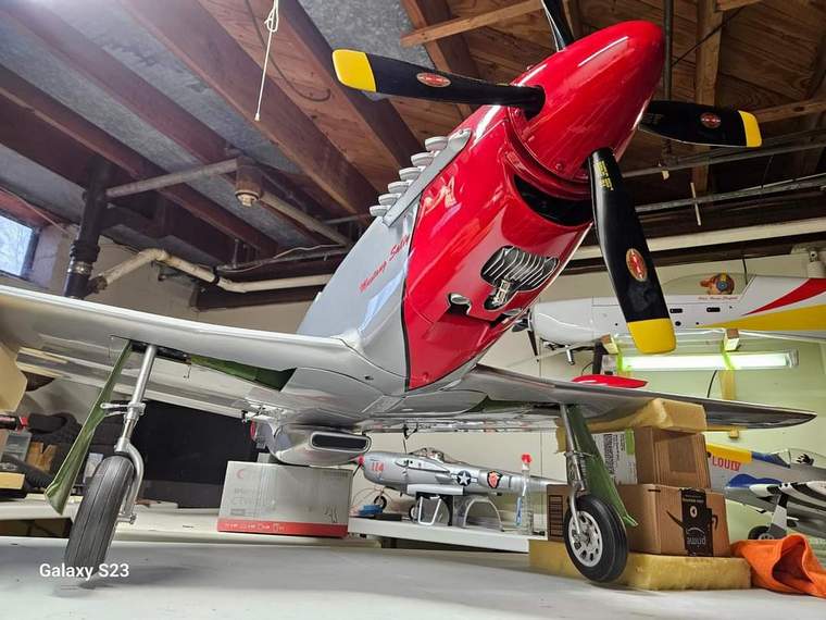 Randy, who lives in Michigan USA, started the build of his 1/5th scale Mustang Sally P-51D more than 13 years ago. Randy owns a high-end automotive painting business in the US called Gold Horizons and really wanted to do something special for this RC plane build. With a standard Top Flite P-51 Mustang build kit as the base, he started looking around on the internet for possible paint scheme candidates which he could adopt for his build, ultimately choosing that of South African based Mustang Sally. On asking Randy why he specifically chose Mustang Sally, his reply was that he was looking for a paint scheme to adopt for his build and when he found Mustang Sally with her clean yet striking look, it simply resonated very well with him and he knew this was the one he would adopt.