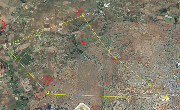 The event was run in three categories over a short-measured course. The start was at FAKR with a flight out to oom Piet se Plaas followed by a left to the Tank Farm. The next turn point was a left at the Silos and then left again at the Mine Dump, FAKR's own NDB. Each competitor had to fly twice around the track and land after the second pass, a total of distance of 34n nautical miles.