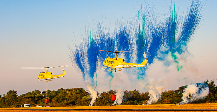 Another display almost unique to the Lowveld is the Kishugu Working on Fire display with the Cessna Spotter plane, the 2 UH-1's and the AT 802's. I will almost just drive down to the Lowveld to just see it. And with a pyrotechnic display it is just breathtaking.