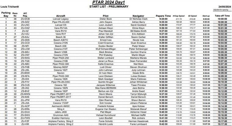 Most of the competing aircraft were parked in their allocated departure slots. However, there were some changes that led to aircraft being moved which did not cause any delay and after the morning's briefing it was all set for the final leg. This time it was the chance of the slowest to take to the sky first.