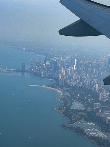 Beautiful views presented as we flew just North of the Chicago skyline on approach to Chicago's O'Hare airport. At one time, I saw another airliner abeam of our 777 on approach, an interesting experience! Also significant is the remnants of the now demolished Meigs Field. An airfield many a Microsoft Flight Simulator enthusiast will be familiar with.