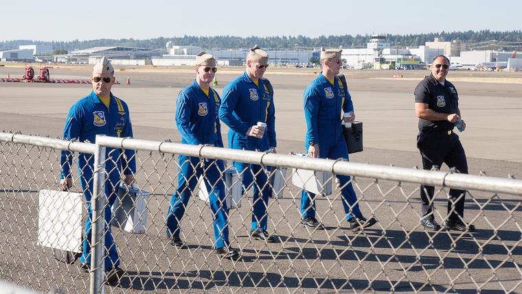 Each year in August, Seattle hosts SeaFair which is actually a dual event encompassing air and sea. The air component is usually several different aircraft and the Blue Angels the top act and hard to follow for sure.