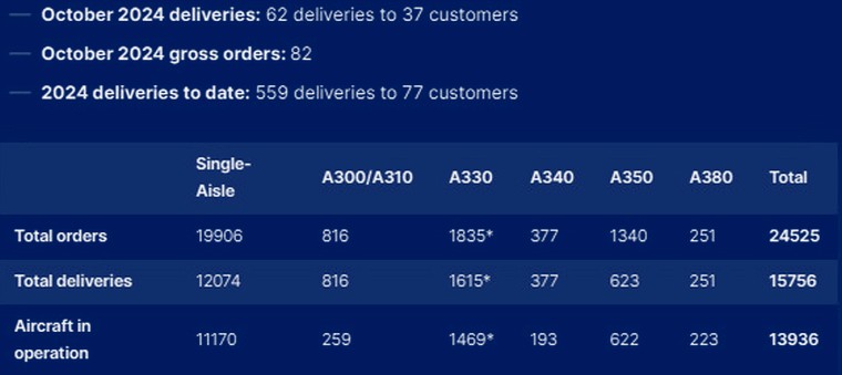 By the end of September 2024, 1,340 A350s had been ordered by 60 customers worldwide, making it one of the most successful widebody aircraft ever.
