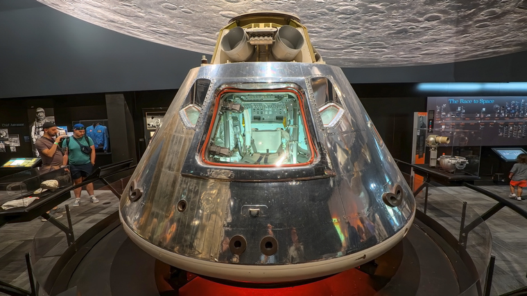 Salvaged from the bottom of the sea, some components of the engine of Apollo 12 - slightly bent but identifiable as the F1 engine bits. Another very interesting item is the Apollo Command Module designated CM007A. It was originally the exact copy of Apollo 1 which was involved in the launch pad fire which cost the lives of Gus Grissom, Ed White and Roger Chaffee. CM007 was thereafter sent back to the manufacturer for modifications and was re-designated as CM007A and returned for the Apollo 1 accident review board to make sure the mods had been carried out to their specifications which included the redesigned hatch which hampered the rescue team reaching the stricken astronauts in the fire.