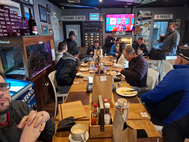 During the morning session all the known programs were flown and the judges retired to Machiel's hanger to review some video footage after which it was time for lunch which was once a gain arranged by Machiel and hosted by the Airborne Café. Delicious burgers and chicken wraps were enjoyed by all.