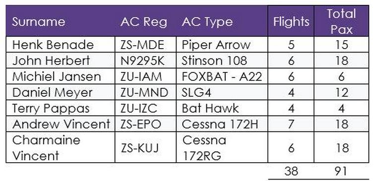 A massive thanks to the Superhero pilots from Lowveld. An amazing aviation community. Young Eagle flights were completed as follows