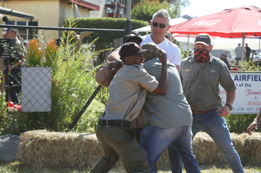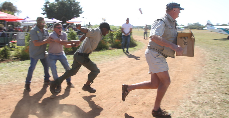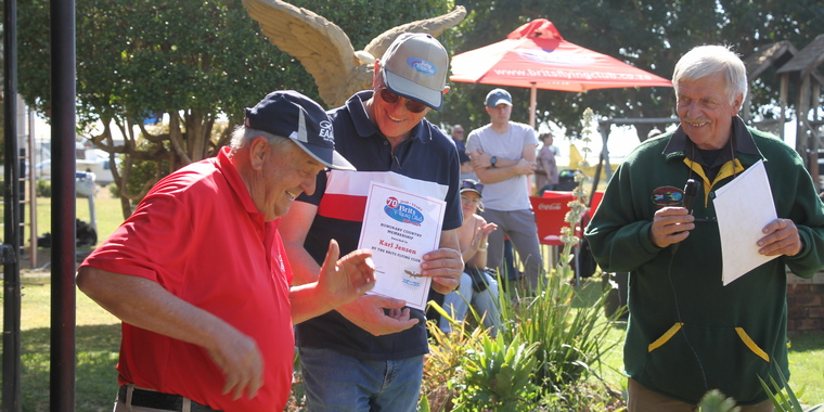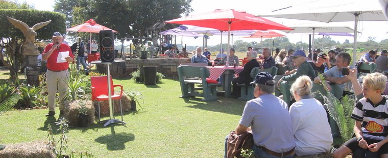 Captain Karl Jensen, who again has kindly offered me a lift, briefly took the mike and thanked and congratulated the club members for what was probably the best attended fly-in in years. (An estimated 85 aircraft visited). To his surprise Karl, whose association with the club goes back to 1963 when he hired at R9.00 per hour a Cessna 172 ZS-CGW to do his commercial flight test, was then promptly awarded honorary life membership.