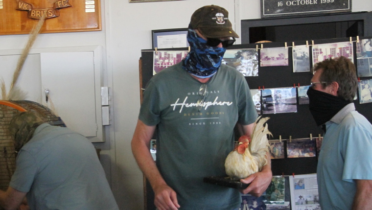 During a break in proceedings when members a rival club arrived and invaded to club to capture its stuffed cock mascot and replaced it with a life chicken. During the raid much fun was had by all as well as the two security guards who really showed their mettle trying to retrieve the precious relic. They, unfortunately were completely outnumbered and their resistance were, I'm afraid to report, to no avail.