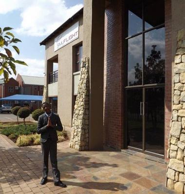 Karabo Phakedi at SIMUFLIGHT's entrance