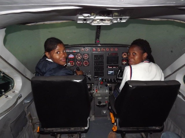 Karl Jensen and aspirant pilots from the Hillbrow Twilight Shelter………….. Natrinias Masinga & Xolane Sebiya In the Beech 1900 simulator