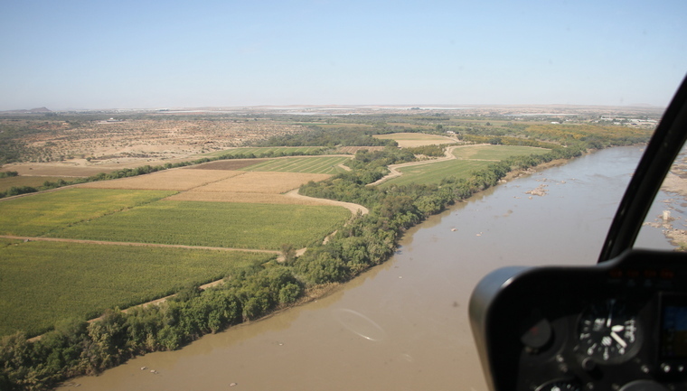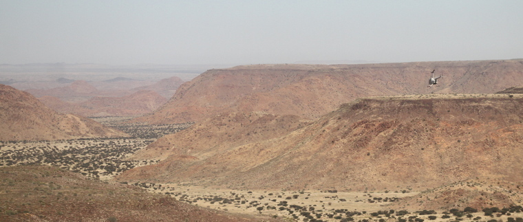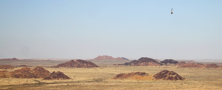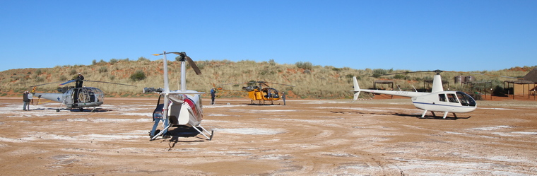 But we didn't need to land at Upington. After all, we fly helicopters, we can land almost anywhere. And compared to Haksteen Pan's massive 20 km gravel runway (where we did land), Upington's "mere" 4,900 meters doesn't seem quite so impressive!
