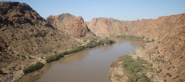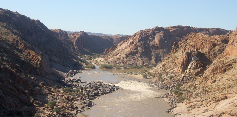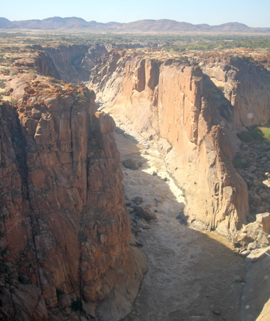 Today's itinerary took us to what is arguably one of South Africa's greatest natural wonders: the Augrabies Falls, a 160 nautical mile round trip. The falls are located near Upington, which by now everyone knows is about 175 km from our home base at Goerapan Lodge.