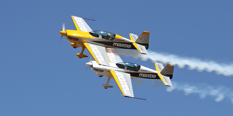 Brad Bennets and Elis Levine it their Mazda sponsored Extra 300 performed their “the joy of motion” high performance and high G factor display.