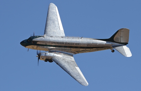 Laurie Raath and Piet Niewenhuizen then did a solo display in the Springbok Classisc Air DC3. ZS-NTE will celebrate her 70th birthday on 24 Spetember.
