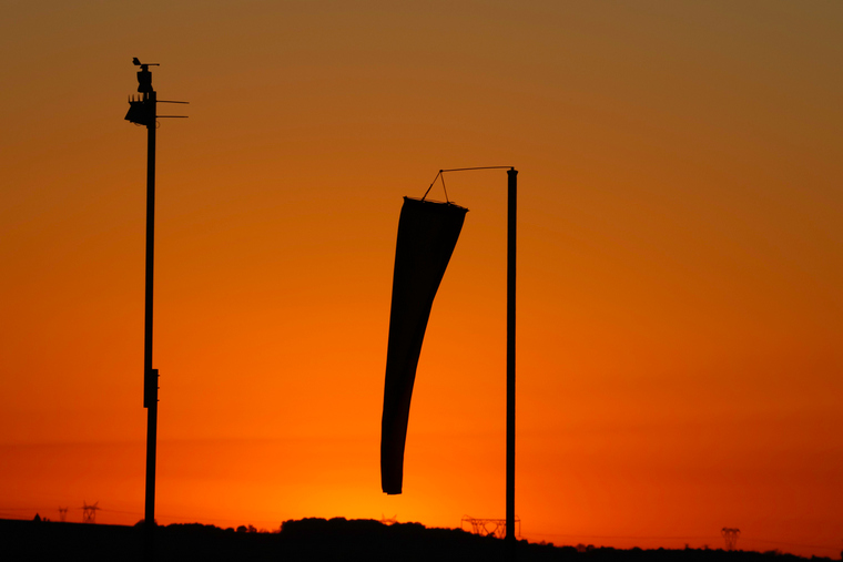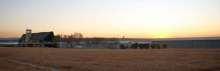 Tossing and turning in bed at 04:45 on Saturday morning, I finally dragged myself out of the warmth of my home to prepare for the journey to Kitty Hawk. I arrived around 6 am to find the field silent-only the whisper of the wind and the distant call of a guineafowl disturbing the eerie calm. It was bitterly cold; the thermometer in my car read -2 °C. I remembered sunrise was around 6:55 am, so I hid in my vehicle for most of the wait. When the sun finally rose, it brought the most amazing warmth. My frozen fingers managed to snap a couple of photos of the Kitty Hawk Clubhouse and the rising sun.