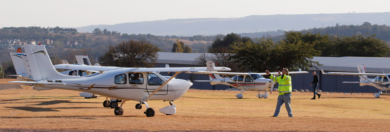 Seeing as this was a Jabiru fly-in, these aircraft were given pride of place on the grass ramp in front of the clubhouse, guided into position by Dawie Pretorius.
