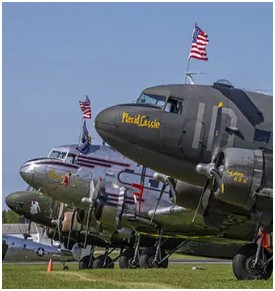 DC3 OSH Aircraft participating include those that returned to Europe as part of the DC-3 Society's major commemorative missions on the D-Day 75th and 80th anniversaries, and the Berlin Airlift 70th and 75th anniversaries: