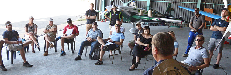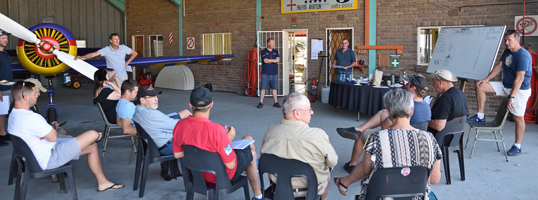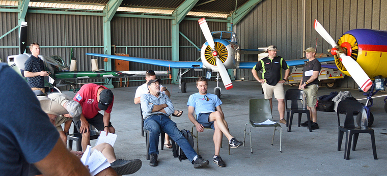 Every competition day was started off with a briefing in Ingmar's hangar. Topics discussed were weather, density altitude, emergency procedures and Flight order. At the end of day 1 and 2 the unknown programs were compiled for the next day. Pilots in each class would get together and take turns in selecting a figure and then compiling it in to a program. For classes with only one or two entries, judges were roped in to add figures in order to obtain a full program.