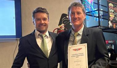 Warren as Chairman of the Sport Aerobatic Club and Ingmar as Vice Chairman handed out certificates to all members of the team. Nadine and Maritza handed out fun prizes to various well deserving participants. Ingmar and Aldo were the recipients of the coveted “Pink Tu-Tu's” for their professional renditions of their sequence walks, Machiel received a blanket to cover himself for next time he takes a nap under the wing of a Yak 52 and Quintin received a clock to improve his time management at briefings.