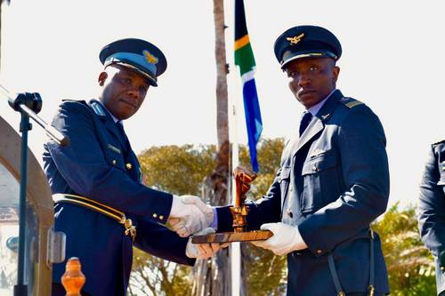 The new officer commanding earned his wings at Central Flying School (CFS) Langebaanweg in 2008 after which he moved to 85 Combat Flying School (CFS), also at Makhado, where he qualified as a flight leader. Next stop for Ndzuta was qualifying as a pilot attack instructor (PAI). Career highlights include taking part in Operation Kgwele (securing the FIFA World Cup in 2010), deploying on the SAS Mendi as part of Operation Copper in 2011, taking part in former President Nelson Mandela's Funeral in 2013, and involvement in Exercise Blue Okavango in Botswana in 2015.