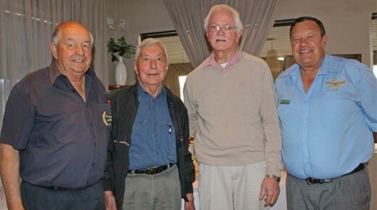 SAA alumni Karl Jensen, Francios (Doc) Malan, Flip Vermeulen with SAAFA East Rand Branch chairperson Roelf Rossouw. Photo: Jani de Beer - Benoni City Times.