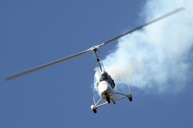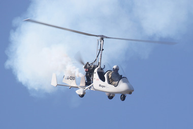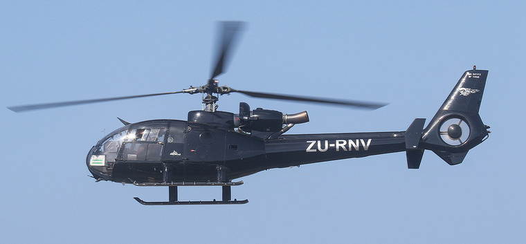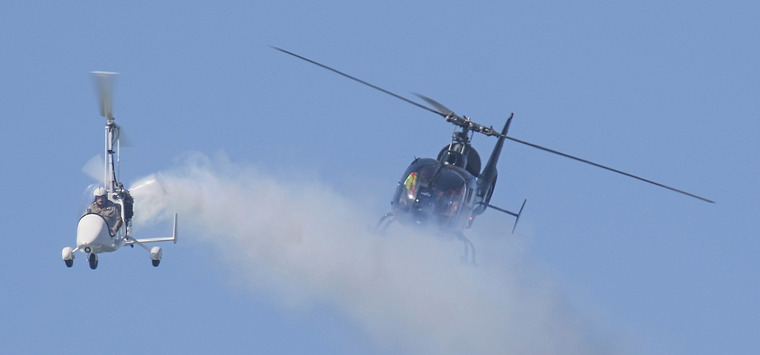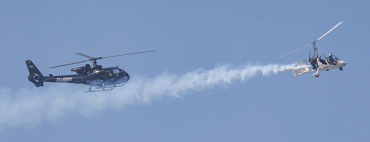 After the solo display ended the gyro was joined by Juba Joubert flying in the amazing Aerospatiale SA-341F2 Gazelle (ZU-RNV) for a combo display. Juba formatted on the slower gyro and the pair gave an interesting display of contrasting flying machines. Not your usual type of formation flying.