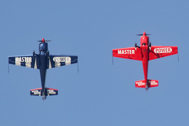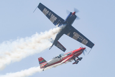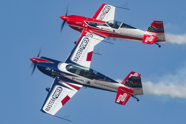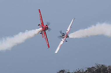 Following this the Master Power Aerobatics team of Nigel Hopkins and Jason Beamish took to the air. These two pilots are firm favourites at air shows around the country, flying their Extra 330 high performance aircraft (ZS-XSC 330SC and ZS-EXT 330LX). Their dynamic display is breathtaking and the highlight for the writer are their two precision knife edge passes, the one canopy to canopy and the other side by side. This team is one of the best and would thrill crowds anywhere in the world.