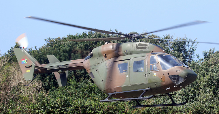 The South African Airforce then presented the MBB-Kawasaki BK-117B-1 (382) helicopter which was put through its paces by Colonel Jared Oliver. The unusual looking machine, in full camouflage, was given a good workout to demonstrate its full capabilities.