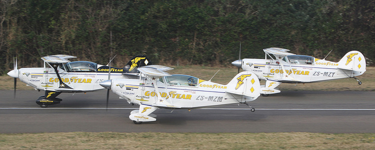 After this there was another regular and a favourite team on the airshow circuit, the Goodyear Eagles in their Pitts S2B Specials (ZS-MZN, ZS-MZM, ZS-MSY). The team on the day were Nigel Hopkins, Jason Beamish and Trevor Warner.