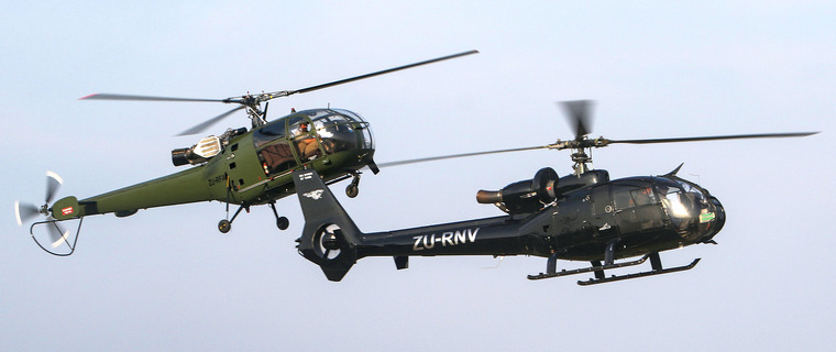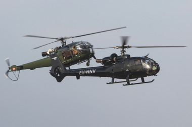 The Eagles were followed by the Alouette III and Gazelle combo - Bennie de Jager and Juba Joubert. Another interesting combination and demonstration of fine flying in these iconic helicopters.