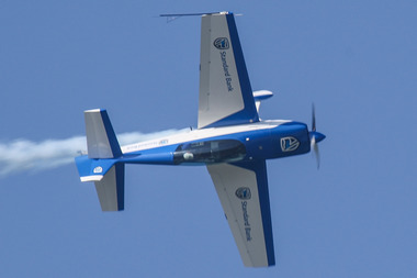 Local businessman Roger Deare followed the Lions in his smart Standard Bank sponsored Extra 300L (ZS-OLR). Roger is a regular aerobatic competitor and is an avid aviator based at Virginia and gave a good demonstration of the skills he has developed.