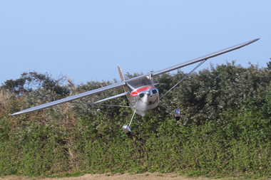 The penultimate display was the Veteran Flight in a Cessna 140 (NC72513) flown by Elton Bondi. The scenario was that the pilot (played by Bondi) was a 97-year-old ex WW2 pilot whose wife had stopped him flying when they got married. In old age he decided to fly one more time. He staggered and fell on his way to the aircraft and when he was helped into the plane it took off with the old man in it. The plane then flew erratically around the field looking for all the world like it was about to crash. The SAPS were alerted and two police vans chased the aircraft along the runway, expecting the worst. Very entertaining and some awesome flying by Elton.
