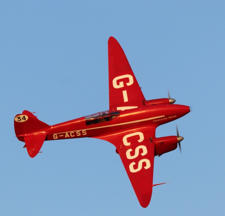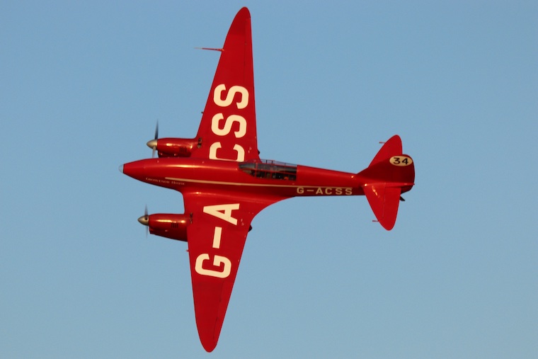 By 19:42, the evening shifted to speed and elegance with “The Ram”, showcasing the streamlined beauty of the de Havilland DH.88 Comet. As the aircraft swept low across the airfield, the music captured its sheer elegance and race-bred pedigree.