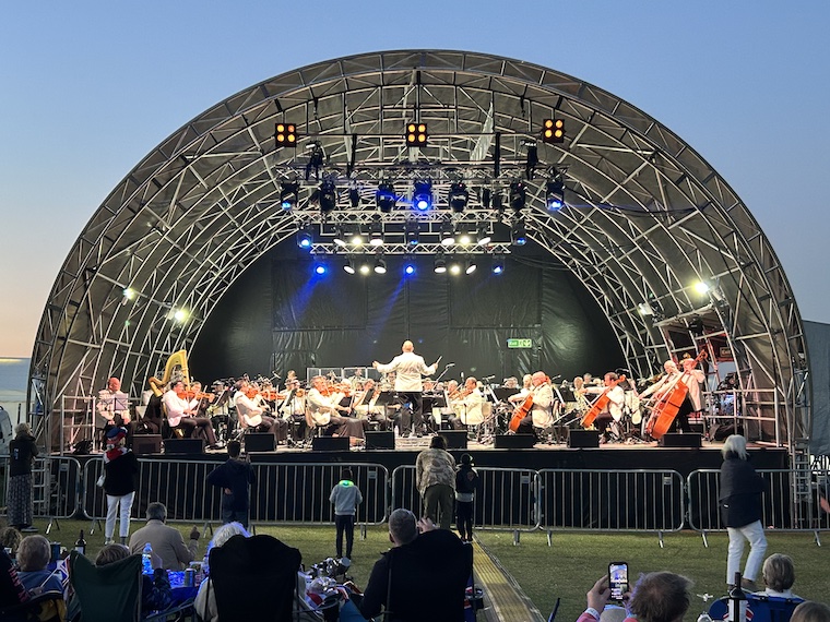 As dusk settled over Old Warden, the second act of the Shuttleworth Collection Flying Proms opened with cinematic grandeur as the orchestra launched into the stirring Star Wars Main Theme. The bold brass and sweeping strings were answered by cheers from the crowd, setting the tone for an uplifting finale to the evening's celebrations of music and flight.