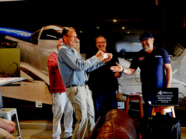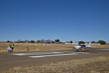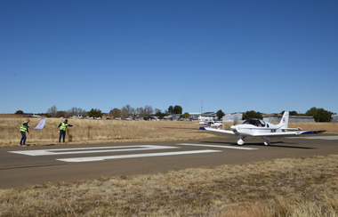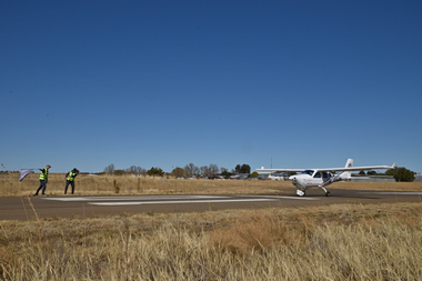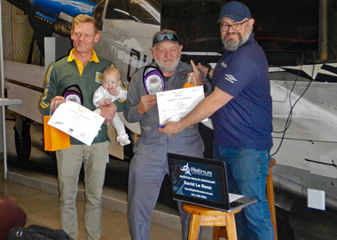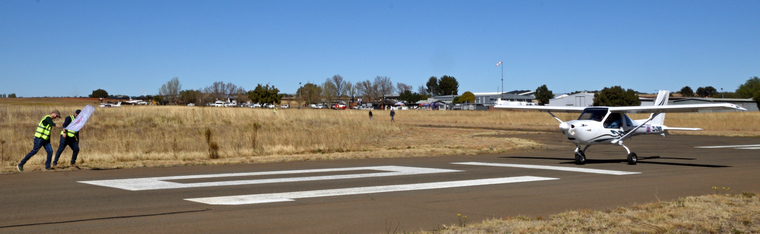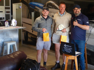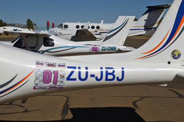 The first aircraft was waved off at exactly 10:30 and then at varying intervals as predicted by the handicaps. First aircraft to cross the finish line did so just before 12:00 noon. The aircraft was Race number 1 a Jabiru J400 with registration ZU-JBJ flown by pilot Sean Cronin with Navigator Dean Nicolau. In this case the first aircraft to cross the line was indeed the winning aircraft.