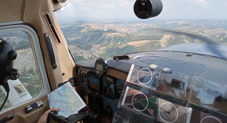 After heavy overnight rains and waking to overcast conditions, the start to the second day was delayed. The forecast showed a tight flying window with conditions worsening again in the late afternoon. The decision was therefore made to fly the shortest of the prepared routes, which took crews to the southeast of Ferrara. In addition, the scored landings for the day were cancelled due to the parallel grass runway with the landing lines being waterlogged. To further highlight the extremely high level of the current top rally pilots, another three crews returned after Day 2 with navigation scores of 0, achieved by teams from Poland, Czech and France. This was the second day in a row that Michal Wieczorek and Marcin Kwiatosz from Poland achieved this feat. Tarryn and Iaan also had an improved day, with a navigation score of 169 and an observation score of 610. This was despite a mis-plot of a turn point resulting in flying to an incorrect feature and incurring 100 penalty points.
