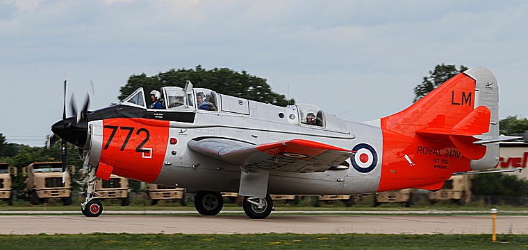 In 1961 she had successfully and without incident or damage completed her training task and she again went to the military as XT752 where the Royal Navy had her new livery of silver and Day-Glo applied. She served in the RNAS until 1967 and then with 849 squadron until 1970 when she was moved to Lossiemouth in Scotland. In September 1970 she was one of the start attractions at the Biggin Hill's Airshow. Still with low operating hours she spend the last of her operational days Lossiemouth before being placed in storage.