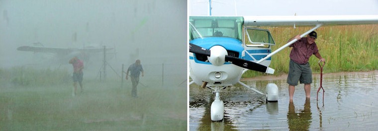 And then the heavens opened. A significant storm and serious downfall delayed the event for a little more than an hour and some fought the elements when wind started to swing aircraft around. Who knew? A Cessna 150 can float!!!