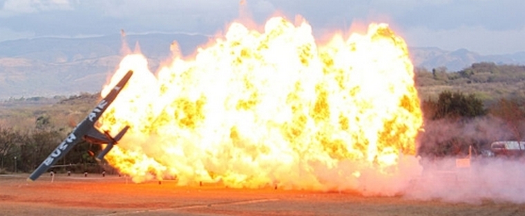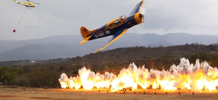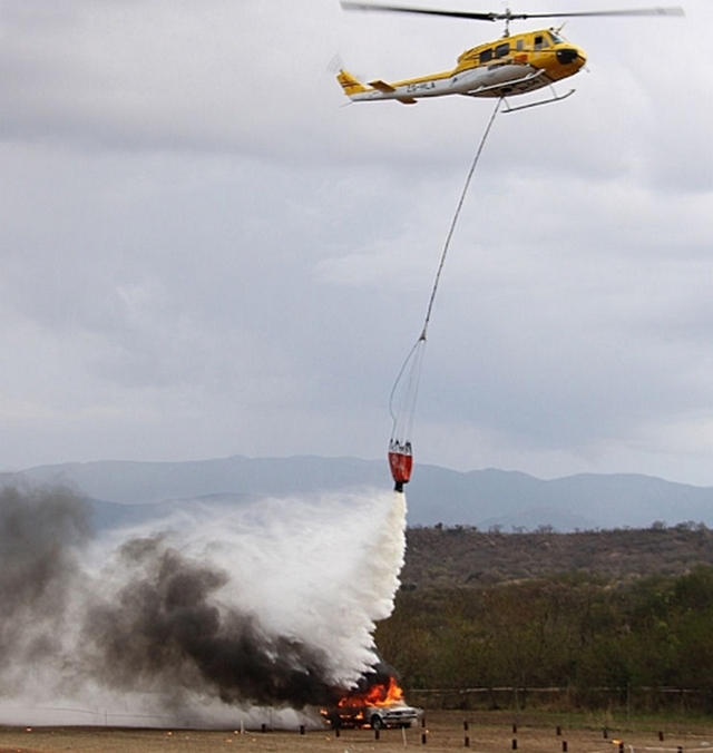'Working on Fire' then had their turn in dousing the blaze from the explosion in their Helicopter and Crop sprayer.