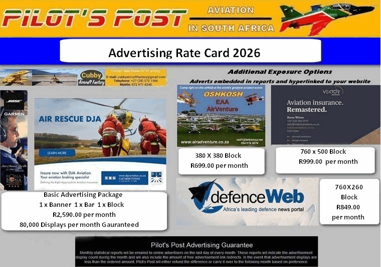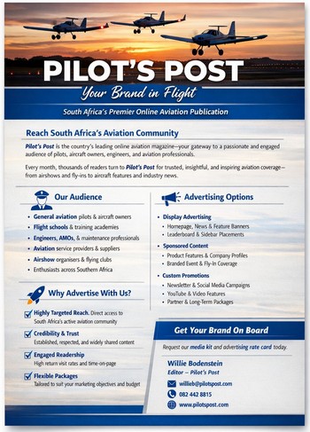 Take your marketing to new heights-advertise with Pilot's Post and be part of South Africa's leading aviation voice.