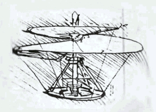 Da Vinci's machine was powered by four men that would turn the screw type rotor. It did not work because the body of the machine itself rotated in the opposite direction to the rotor.