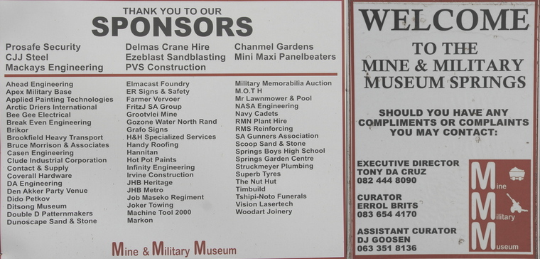 The museum, a registered non-profit organisation, showcases a growing and perfectly restored collection of historic military vehicles, aircraft, artillery and mining artefacts on its extensive superbly kept premises in Murray Park. Its collection reflects the East Rand's mining heritage and South Africa's military past and is run by local volunteers and enthusiasts with a passion to preserving our rich history.
