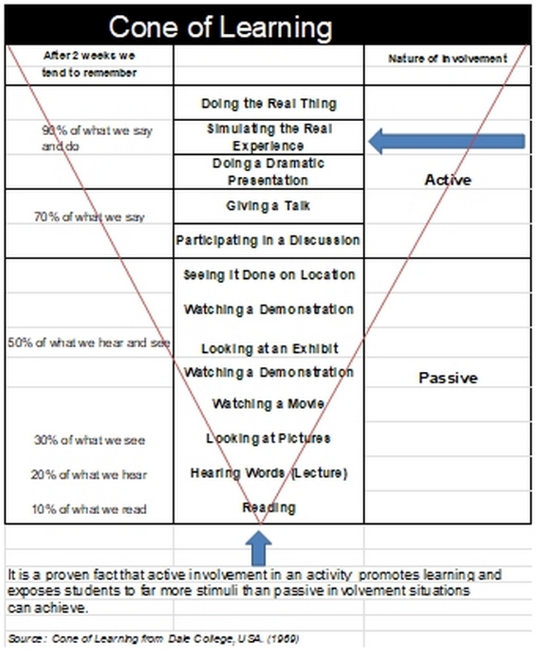 As can be seen, the more interactive a situation is, the larger the benefit to the student.
