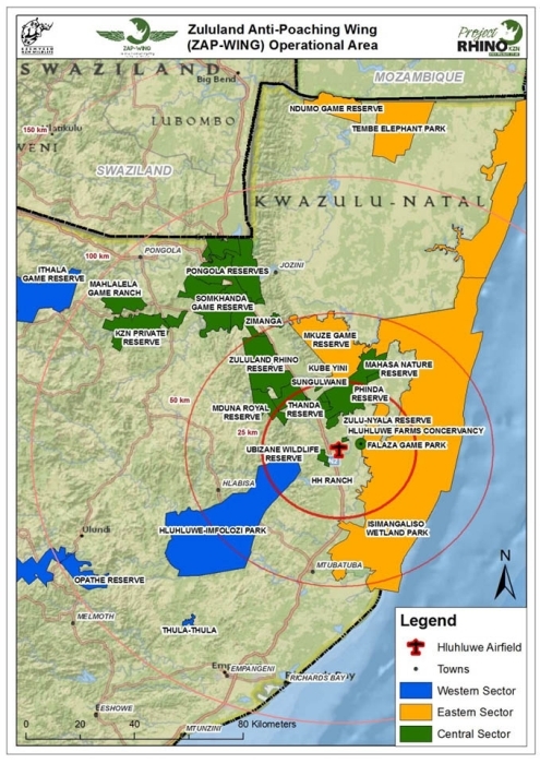A year later, in September 2012, an addition to Project Rhino KZN was made when ZAP-Wing (Zululand Anti Poaching - Wing) was added. Project Rhino KZN were the recipients of the prestigious 2013 Mail & Guardian Rhino Rescue Award, with ZAP-Wing as its flag-ship project.